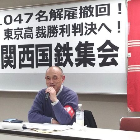 関西国鉄集会 動労千葉・中村副委員長囲み