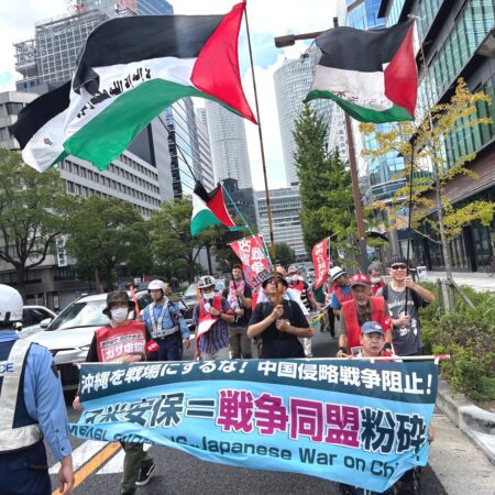 デモでは、「中国侵略戦争やめろ!」「横田を戦争の司令部にするな!」のコールに対して、子どもたちや住民が手を振って応え、青年が拳を上げてデモに入ってくるなど、かつてない反応がありました。