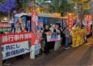 1時間にわたる行動の締めくくりに主催者が発言し「パレスチナと連帯する闘いを断固やりぬいた。10月末のトランプ訪日と闘い、11・2労働者集会へ進撃しよう。中国侵略戦争阻止!極右高市政権打倒へ全力で闘おう」と呼びかけた。