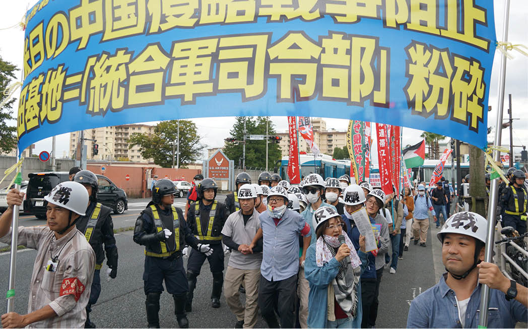 改憲・戦争阻止!大行進東京と同三多摩は10月18日、米日の中国侵略戦争阻止・横田基地=「統合軍司令部」粉砕を掲げて、米軍横田基地を直撃するデモを100人の結集で闘いました。