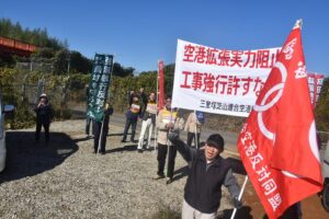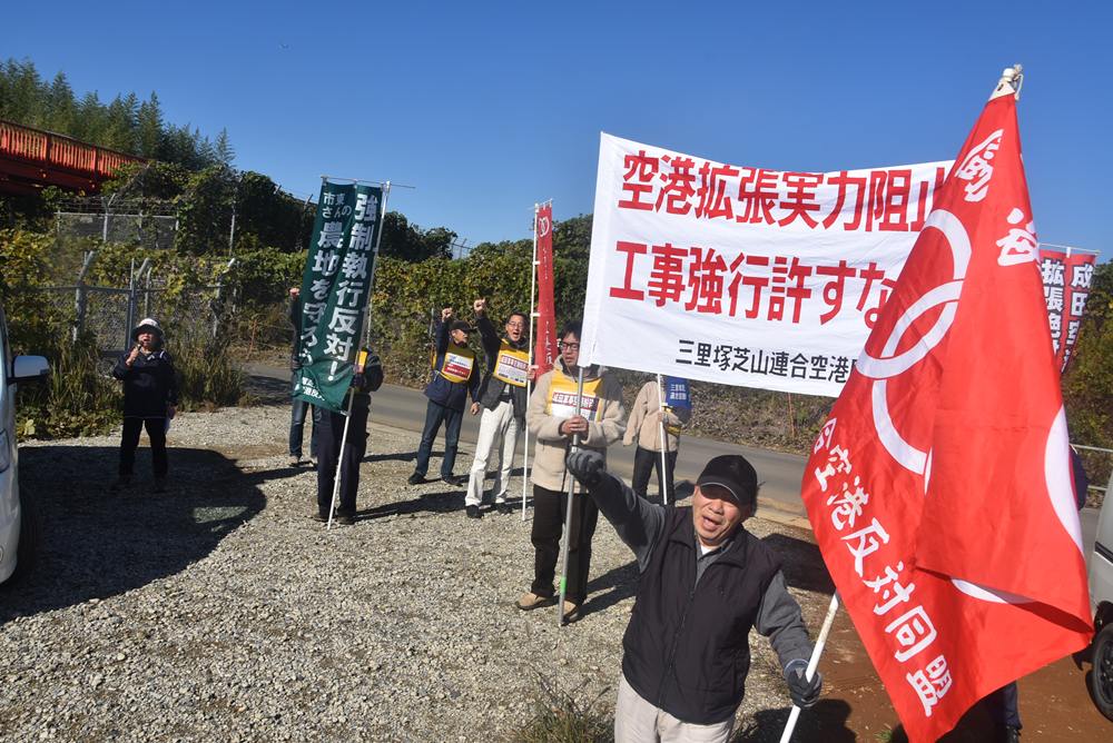「空港拡張を許さないぞ!」「第2の開港を許さないぞ!」「機能強化粉砕!」「工事をやめろ!」「市東さんの農地を守り抜くぞ!」「高市政権打倒!」