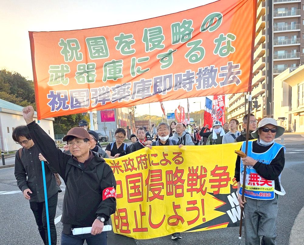 改憲・戦争阻止!大行進関西が11月30日、「祝園を侵略の武器庫にさせない!祝園(ほうその)反戦デモ」を80人の結集で開催しました。事前に周辺地域にポスティングを行い、集会にはビラの呼びかけに応えて地域住民や青年の参加もかちとられました。