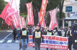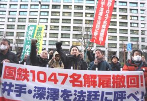 高市が衆院を解散した当日の1月23日に開かれた国鉄1047名解雇撤回裁判の第2回控訴審は、勝利に向けて大きな一歩を切り開いた。東京高裁第24民事部の東亜由美裁判長は、動労総連合が求める井手正敬(JR西日本元会長)と深澤祐二(JR東日本会長)の証人尋問について、「検討する」と明言した。国家権力の一角をなす司法中枢を揺るがして、国鉄闘争は力で活路をこじ開けつつある。これを衆院選投票日の2月8日に開かれる国鉄集会の大結集につなげよう。
