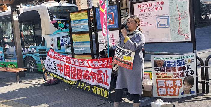 杉並各地で一斉街宣 「中国侵略戦争阻止こそ選挙の争点だ」青年・学生と討論の輪