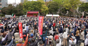 The November 2 rally was the culmination of fierce battles and struggles, with 2,150 people from across the country gathering at Tokyo’s Shiba Park. Amid the instigation of hostility towards China, the drive for military expansion, Chauvinism and patriotism, this victory is significant. It is the Japan’s largest workers’ assembly, promoting the struggle against the war of aggression against China and a class-struggle labor movement. We also confronted Takaichi’s statement, “a Taiwan contingency could constitute a survival-threatening situation,” and launched a full-scale mobilization for struggles across the country and the fight to smash the December war-mongering Diet session.