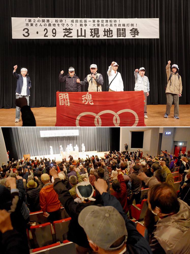 「第2の開港粉砕! 成田拡張=軍事空港粉砕!」を掲げて、三里塚芝山連合空港反対同盟が主催する芝山現地闘争が3月29日に行われた。全国から芝山文化センターに400人が結集し、「成田拡張で強制収用へ」の報道・キャンペーンを打ち砕く総決起として、意気高く集会とデモをかちとった。