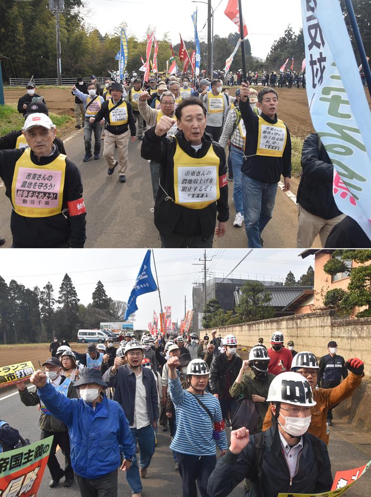 「第2の開港」粉砕!三里塚反対同盟を先頭に芝山町を一周するデモに出発(3月29日)