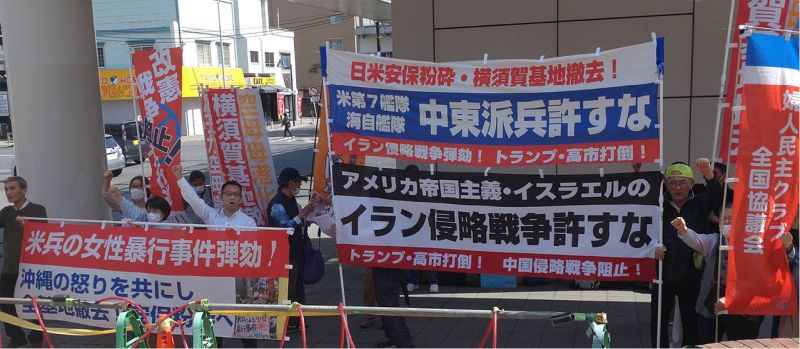 横須賀基地ゲート前 イラン出撃やめろ