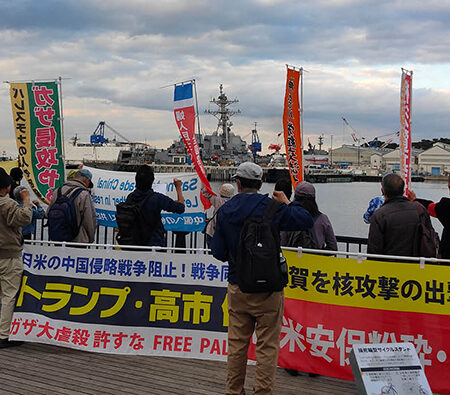 横田 「統合軍司令部」新設許さぬ 基地ゲートへ白ヘルデモ
